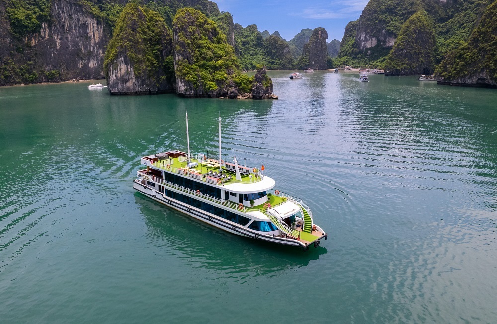 Cruise Ha Long Bay in style aboard the 5-star Hercules Cruise. Sail past iconic limestone islets, explore the stunning Sung Sot Cave, kayak or bamboo boat through Luon Cave, and swim or hike at Titop Island for unforgettable bay views.